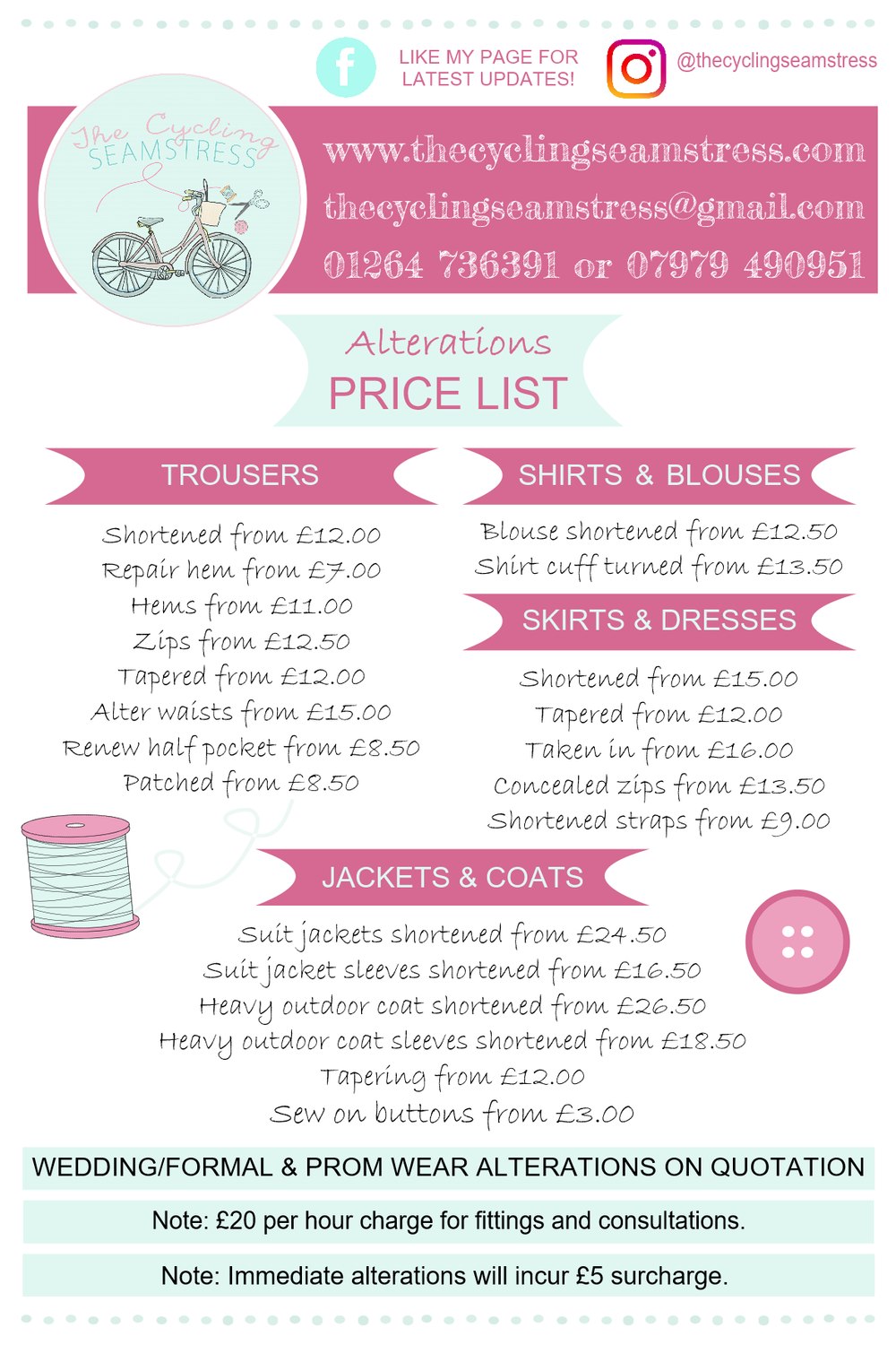 Price Garment Design Alterations Repair